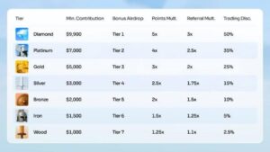 出資者の参加ティアは、24時間ごとに更新される。早く参加するほどティアは高くなり、エアドロップのボーナスや永久特典、手数料割引をはじめとする、プラットフォーム上のベネフィットを享受できる確率が上昇する。